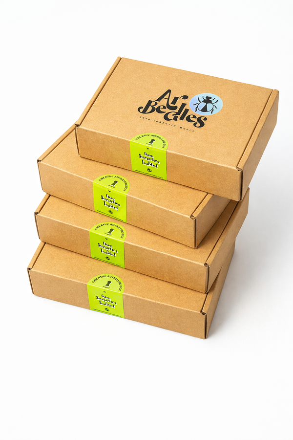 Art Beetles is a guided creative experience, Our boxes are designed & produced with care, hand packed, in limited quantities (not factory-made) & our workshops are pop ups with limited spots.