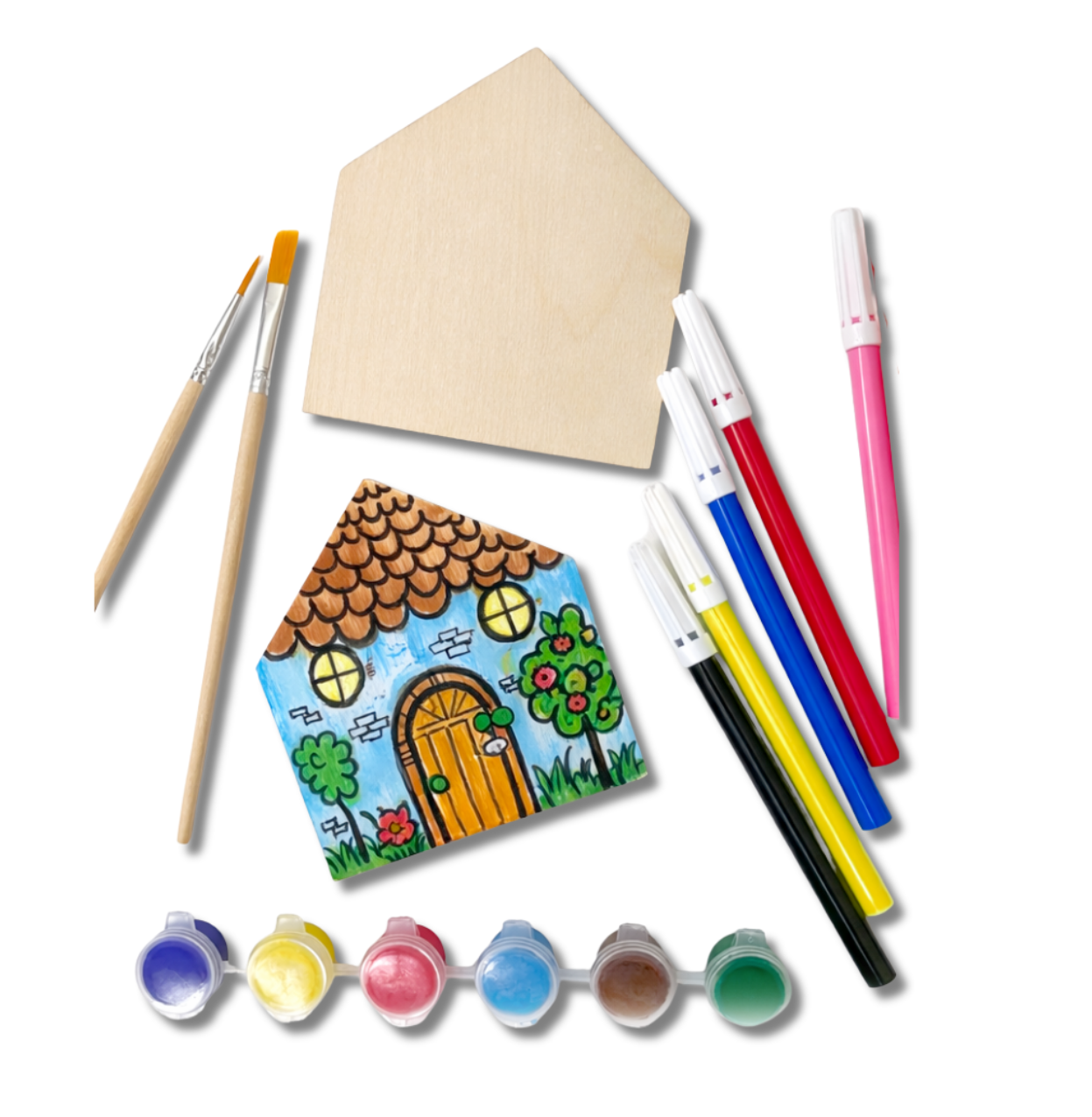 This project uses a variety of supplies and techniques to create the back scene of the winter forest, Young artists will create the forest trees using craft papers, paint snow flakes using the sponge stamps, snow stickers, draw and paint the wooden cabin, and lastly add the cotton snow balls all around.